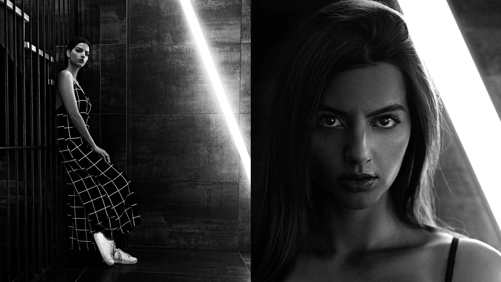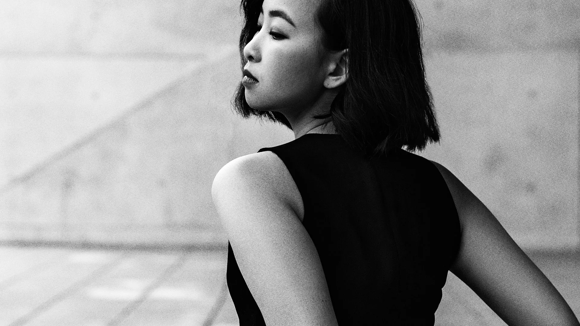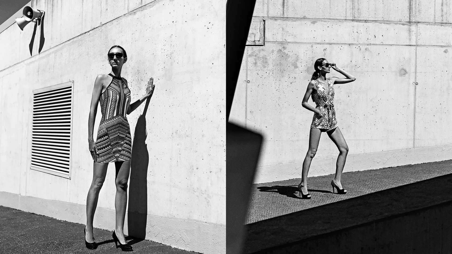 With Monochrome I wanted to combine classic beauty models and modern minimalistic architecture to create modern sculptures in urban places.To do so, I shot the whole book in black and white on digital, 35mm and instant film. This variety underlines the timeless aspect of black and white photography.
